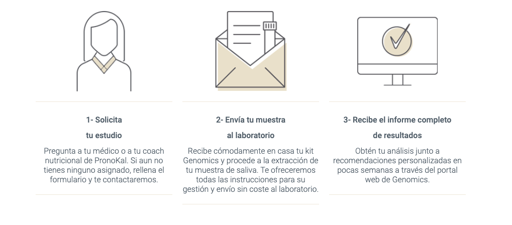 Genomics es un estudio único de 20 genes que intervienen en las principales áreas relacionadas con el exceso de peso, que utiliza los últimos avances en análisis genético e inteligencia artificial, para obtener indicaciones personalizadas en 4 áreas fundamentales del Método PronoKal: